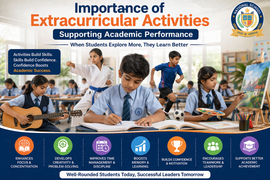 Importance of Extracurricular Activities also supports better academic performance. Students involved in extracurricular activities in schools tend to have better concentration, memory, and problem-solving skills. Balanced participation helps reduce stress and improves focus on studies. According to educational insights from https://kseab.karnataka.gov.in/english, a well-rounded approach combining academics and activities leads to better student outcomes.